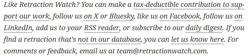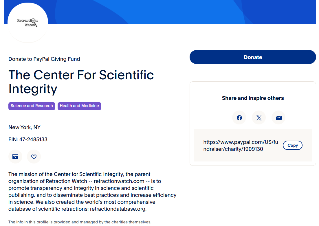 As for Retraction Watch, it is ironic that they are under the umbrella of “The Center for Scientific Integrity”, yet their methods are the exact opposite. At the bottom of their articles is the following statement. Perhaps it’s time they lost their charity status for racketeering and the weaponisation of science.