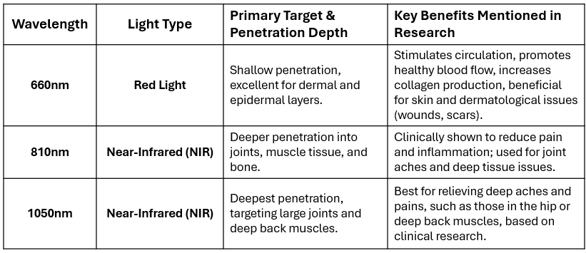Not all light is created equal in PBM. The efficacy of the treatment depends on delivering light within a narrow, scientifically proven band that achieves optimal tissue penetration: