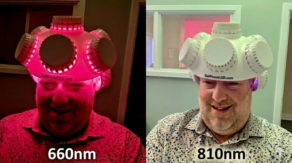 However, in early November—while I was being treated daily for shingles—I increased the helmet treatment to 3 minutes at 660nm and 7 minutes at 810nm. I saw noticeable improvements very quickly. Many podcasters who have hosted me numerous times, including John Campbell, began commenting on how well I was speaking and asking what had changed. Beyond the speech benefits, using the helmet is very calming and helps me focus better.